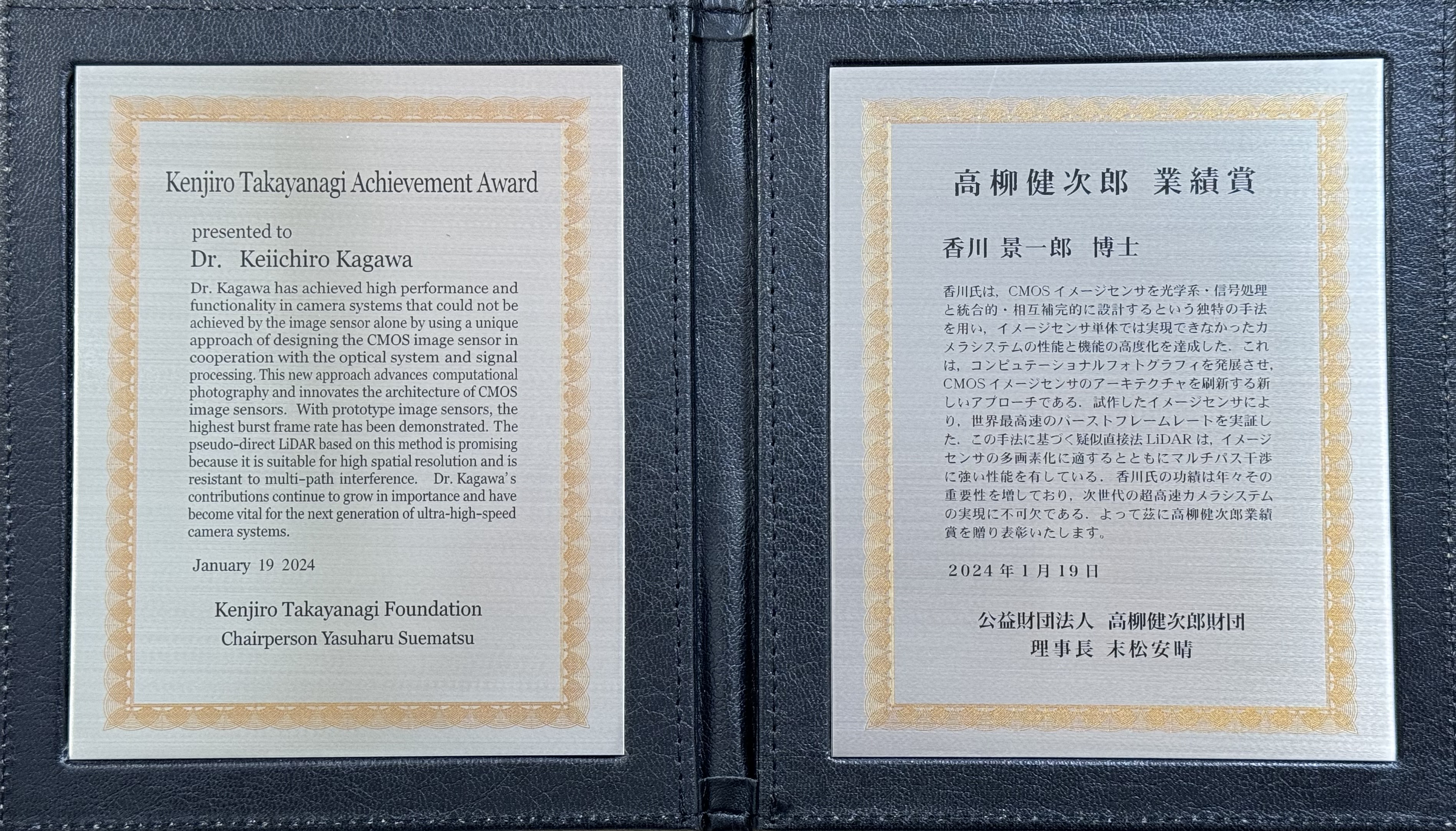 香川景一郎教授(ナノビジョン研究部門イメージングシステム分野)が、高柳健次郎財団「高柳健次郎業績賞」を受賞