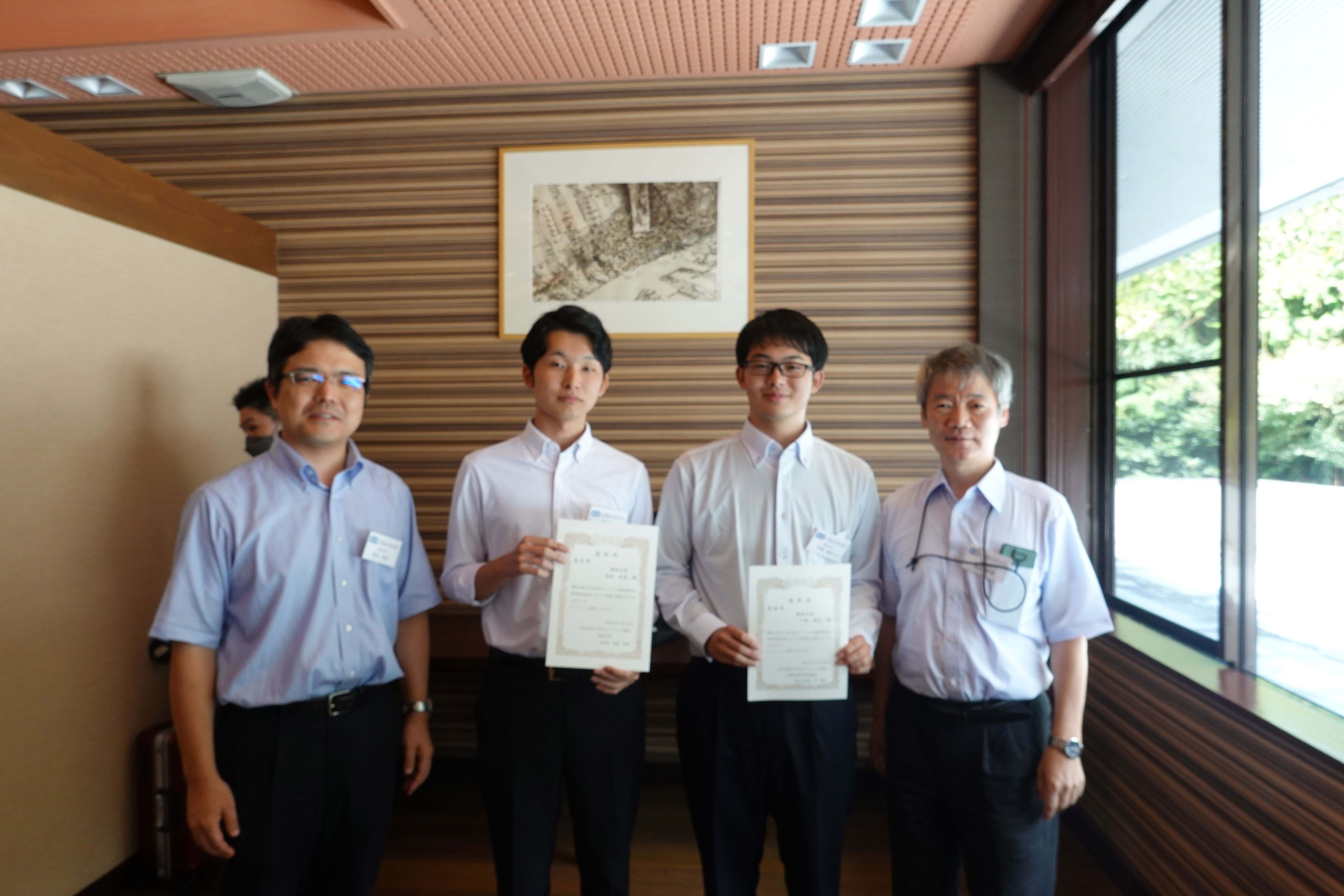 第39回日本セラミックス協会関東支部研究発表会において、電子物質科学コースの脇谷坂元川口研究室から2人の学生が受賞しました。・総合科学技術研究科 工学専攻 修士課程1年 米村 拓真君(優秀賞)・総合科学技術研究科 工学専攻 修士課程1年 戸塚 創太君(奨励賞)
