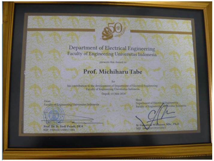 インドネシア大学よりインドネシア大学電気工学科50周年貢献賞を受賞 |